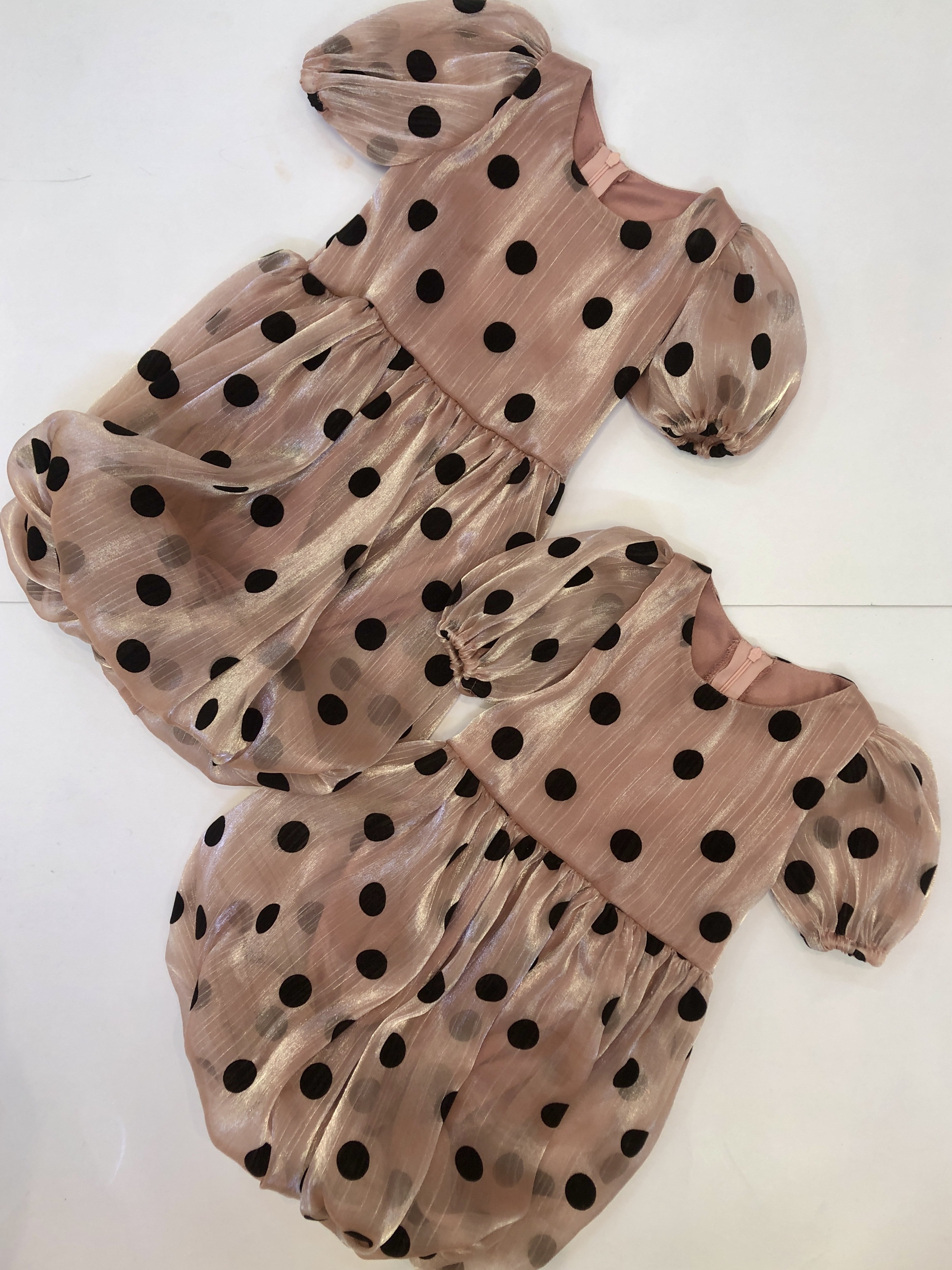 پیراهن توری دخترانه صورتی و نسکافه ای