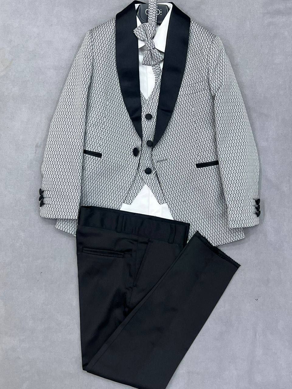کت و شلوار مجلسی پسرانه ۵ تیکه برند Ozzo Boy یکی از خاصترین مدلهای رسمی پسرانه است که با طراحی ترک و دوخت فوقالعاده دقیق عرضه میشود. این ست شامل کت، شلوار، جلیقه، پیراهن و کراوات است و ترکیب رنگ و فیت آن کاملاً هماهنگ و چشمنواز طراحی شده. پارچه باکیفیت ترک، لطافت و استحکام بالایی دارد و باعث میشود فرم لباس کاملاً مرتب و شیک روی تن بنشیند. این ست برای جشنها، مراسم رسمی، عکسبرداری و مهمانیهای خاص انتخابی ایدهآل است. با کت و شلوار Ozzo Boy، استایل فرزند شما مانند یک جنتلمن کوچک خواهد بود
