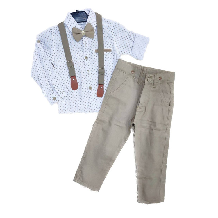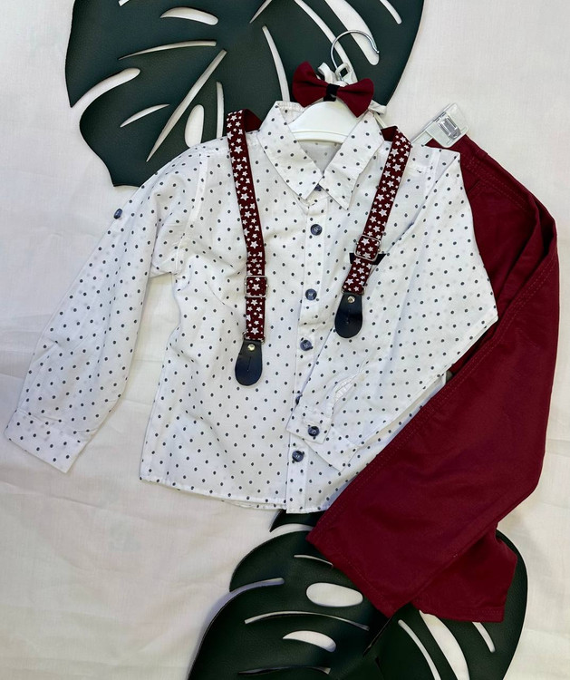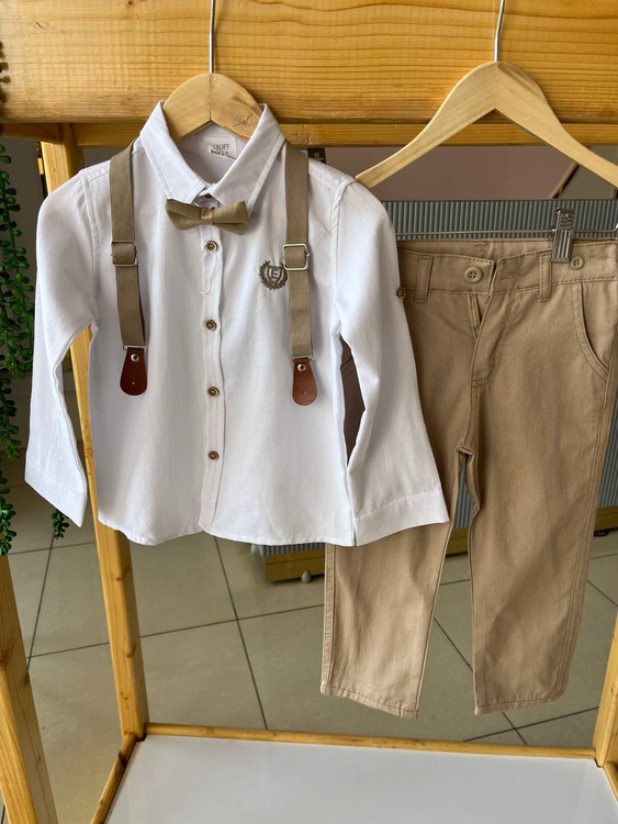 ست سهتیکه پسرانه شامل پیراهن، شلوار و پاپیون ترک، یکی از بهترین انتخابها برای استایل رسمی و مجلسی پسران خوشسلیقه است. پارچهی مرغوب ترک، دوخت تمیز و فیت استاندارد این مدل باعث میشود لباس کاملاً مرتب و خوشفرم روی تن بنشیند. پاپیون ظریف و هماهنگ با رنگ لباس، جذابیت خاصی به استایل کودک میدهد. این ست برای جشن تولد، عکاسی، عروسی و مهمانیهای رسمی انتخابی ایدهآل است و استایل پسرانهای کاملاً شیک و لاکچری به وجود میآورد