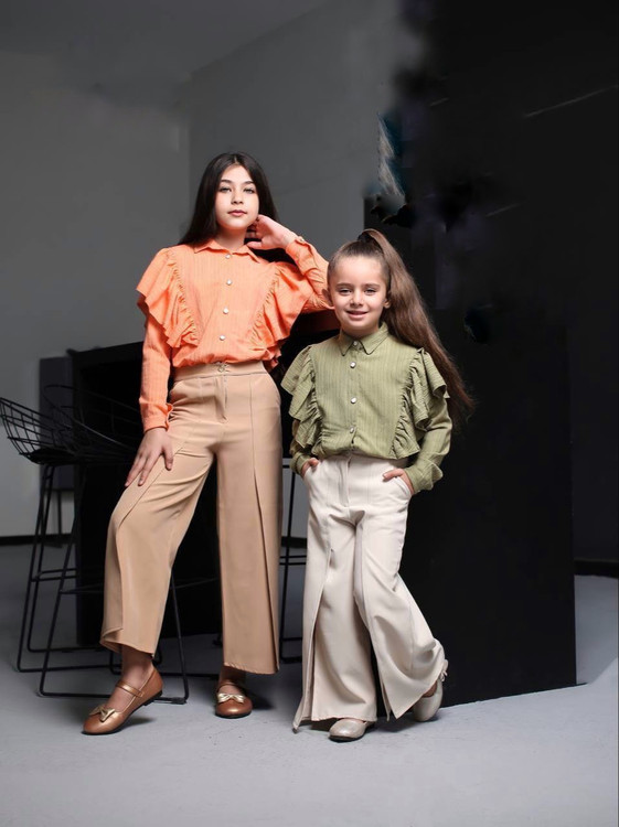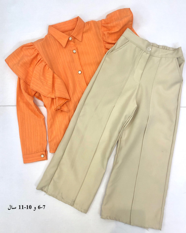 ست شومیز شلوار دخترانه با رنگبندی شاد همراه با شلوار چاکدار که تن خور بسیار زیبای ان باعث میشود برای مهمانی و دورهمی و خرید یک انتخاب مناسب باشد