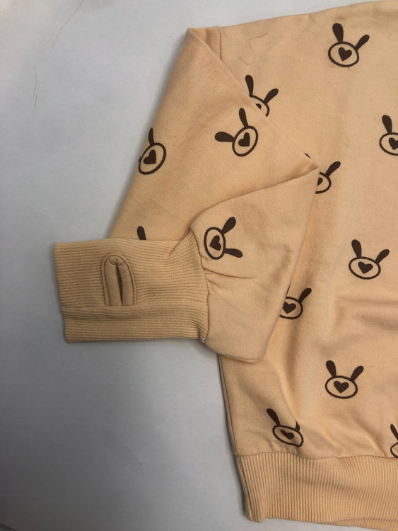 بلوز تک دخترانه در رنگ زیبایگلبهی . با طرح خرگوش شاداب و دوست داشتنی . همراه با دستک انگشتی . انتخابی عالی برای دختران 4 تا 12 ساله .