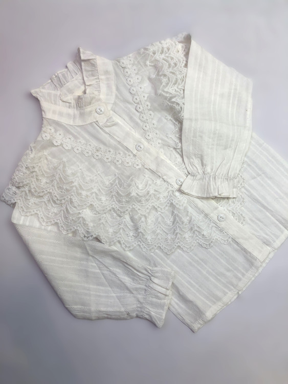 شومیز توری دخترانه سفید یکی از انتخابهای شیک و دخترانه برای مجالس و مهمانیها است. جنس توری به کار رفته در این محصول بسیار لطیف بوده و حساسیتی برای پوست کودکان ایجاد نمیکند. رنگ سفید این شومیز به راحتی با انواع دامن، شلوار جین و اکسسوریهای رنگی ست میشود.